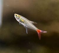 Glass Bloodfin Tetras are delicate, translucent fish with subtle pinkish hues and a touch of red on their tails. They add an understated elegance to any tank.