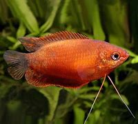 Red Honey Gouramis are a vibrant red variant of the Honey Gourami, making them an eye-catching addition to any tank. They have the same peaceful and friendly nature.