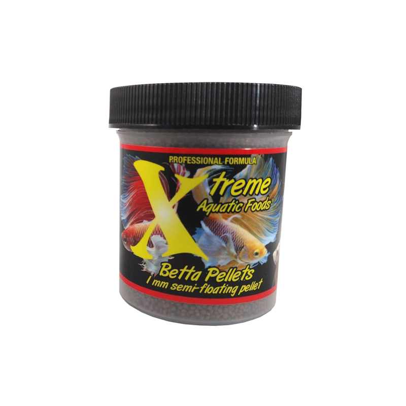 Xtreme’s floating pellets for bettas are now available in either 1mm or 1.5mm pellet sizes. Betta fish are extremely popular and are now available in an awesome range of colors, fin shapes and sizes. You will want to keep those colors vivid and ensure the overall health and vitality of the betta is maintained, this where Xtreme Betta Pellets can help. Xtreme Fish Food boost ALL natural fish colors overall, rather than highlighting one color over another. Xtreme uses four initial proteins in their Betta Pellets and a range of natural vitamins to help keep your prized Betta Fish fully colored and healthy. A handy .5cc portion spoon is included in each Betta Pellet jar, so you do not overfeed.